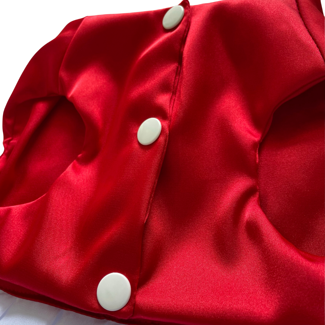 Este Vestido de Navidad Mama Noel de Satín para Mascotas ofrece brillo, suavidad y un estilo elegante para tus Perros. El satín aporta un acabado lujoso que resalta en cada celebración. Perfecta Ropa navideña para dueños que desean un look distinguido en fiestas, eventos y fotografías especiales. Comodidad y glamour en una sola prenda. Disponible en varias tallas: Desde la 0 hasta la 6, para perros pequeños, medianos y grandes.